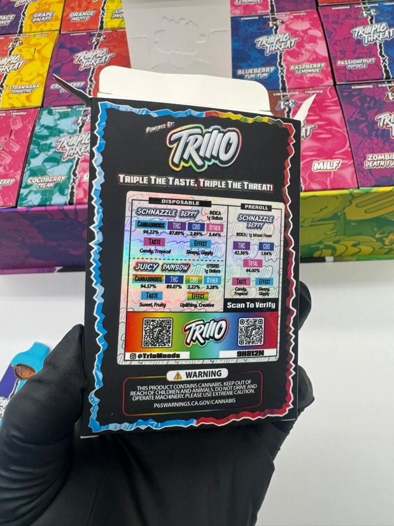 Ultimately, the gummies in TRIIIPLE THREAT by TRIIIO are designed to deliver flavor precision, discretion, and controlled enjoyment. They add depth to the bundle by offering a measured alternative that balances immediacy with longevity. Through consistent formulation, thoughtful flavor design, and reliable performance, this component plays a vital role in making TRIIIPLE THREAT a truly adaptable three-format cannabis experience.